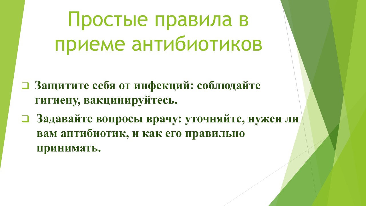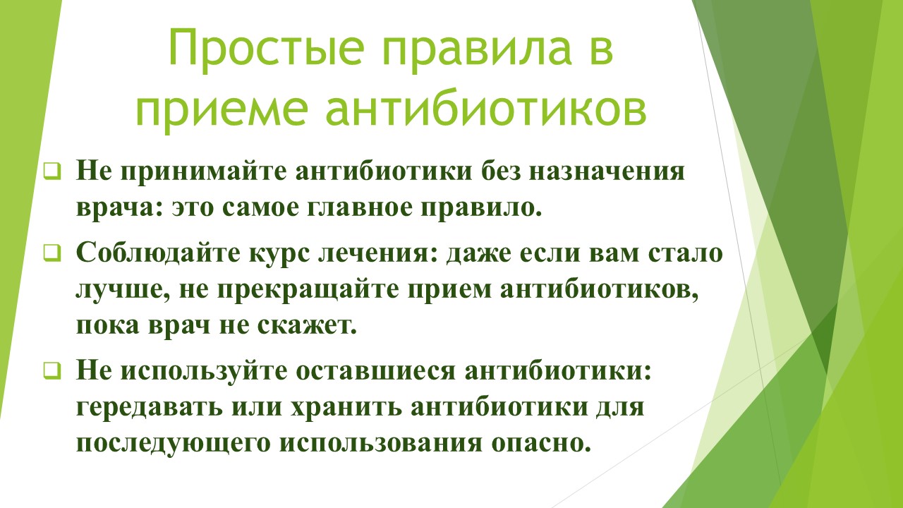 ПРОСТЫЕ ПРАВИЛА ПРИЕМА АНТИБИОТИКОВ.