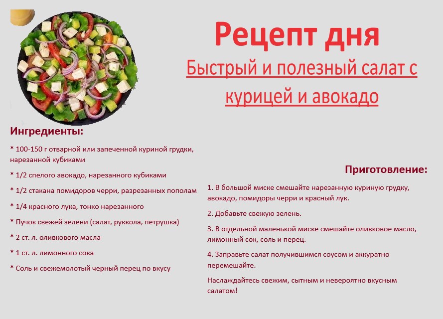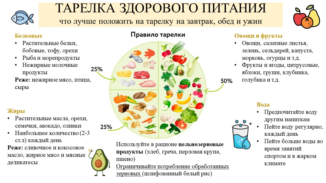 А в наших карточках (в карусели) вы найдете шпаргалку по "правильной тарелке" и рецепт вкуснейшего и простого в приготовлении ЗОЖ-салата