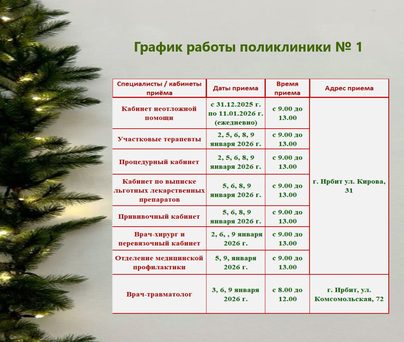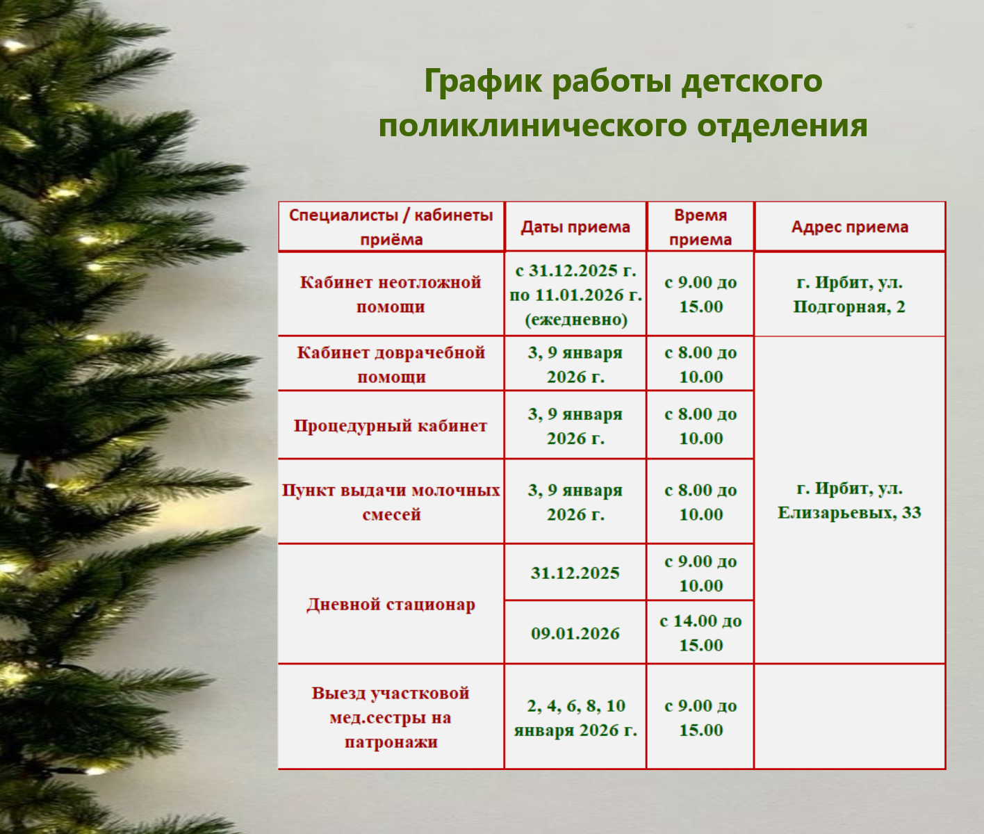 ГРАФИК РАБОТЫ ГАУЗ СО "ИРБИТСКАЯ ЦГБ"
